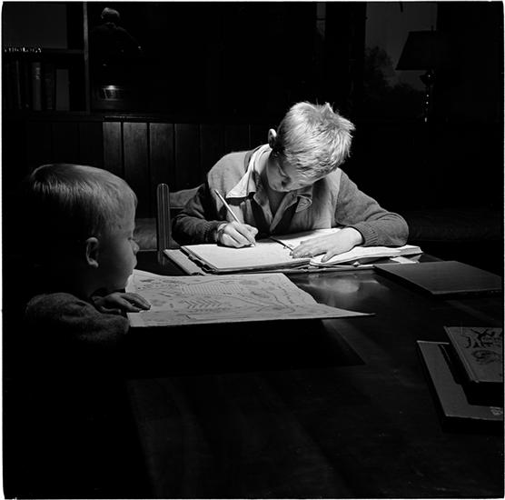 Shoe Shine Boy [Mickey and another boy reading and doing homework.]
