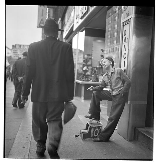 Shoe Shine Boy [Mickey near his shoe shine stand.]