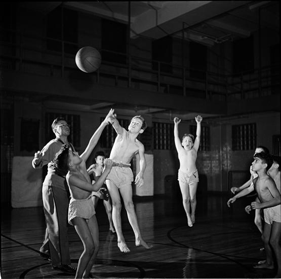 Shoe Shine Boy [Micky and other boys playing basketball.]