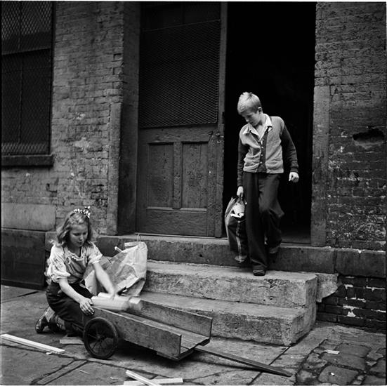 Shoe Shine Boy [Mickey on sidewalk with girl and wheelbarrow.]