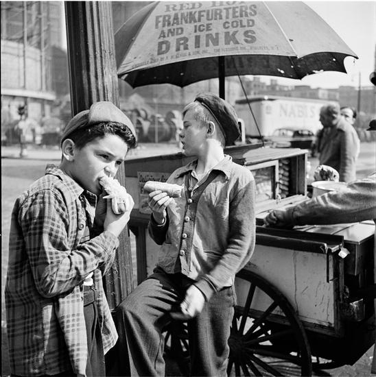 Shoe Shine Boy [Mickey and another boy eating hot dogs.]