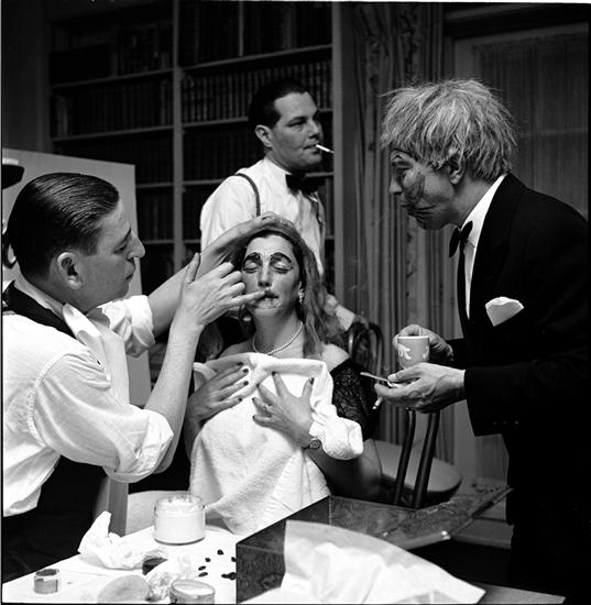 Beaux Arts Ball [Members of the Architectural League of New York putting on makeup at a costume party.]