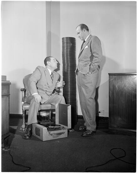 Guy Lombardo [Guy Lombardo and two others around a piano.]