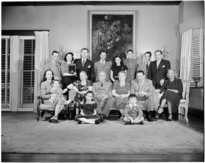 Guy Lombardo [Guy Lombardo and family seated around the fire place.]