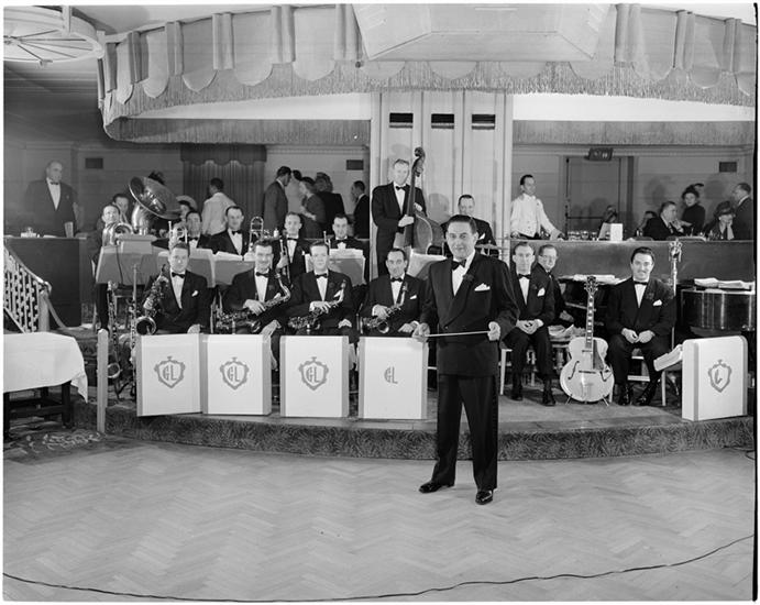 Guy Lombardo [Guy Lombardo and two others around a piano.]