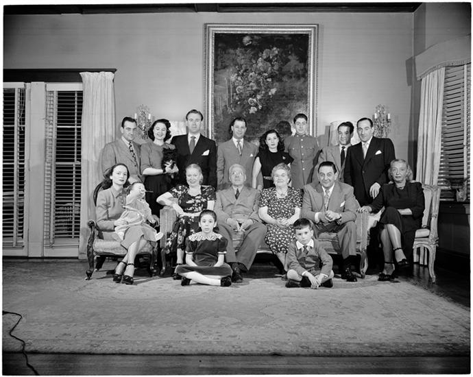 Guy Lombardo [Guy Lombardo and family seated around the fire place.]