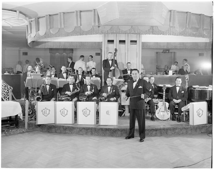 Guy Lombardo [Guy Lombardo and two others around a piano.]