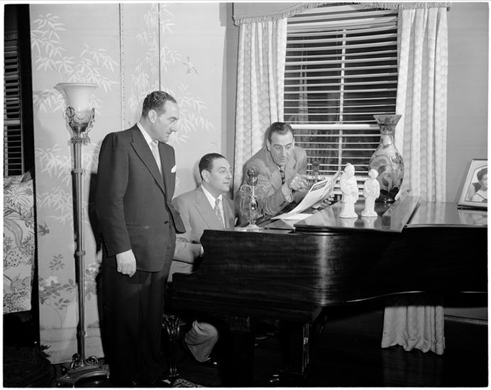 Guy Lombardo [Guy Lombardo and two others around a piano.]