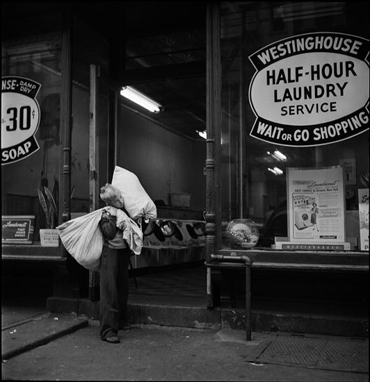 Shoe Shine Boy [Mickey carrying laundry outside of a laundromat.]