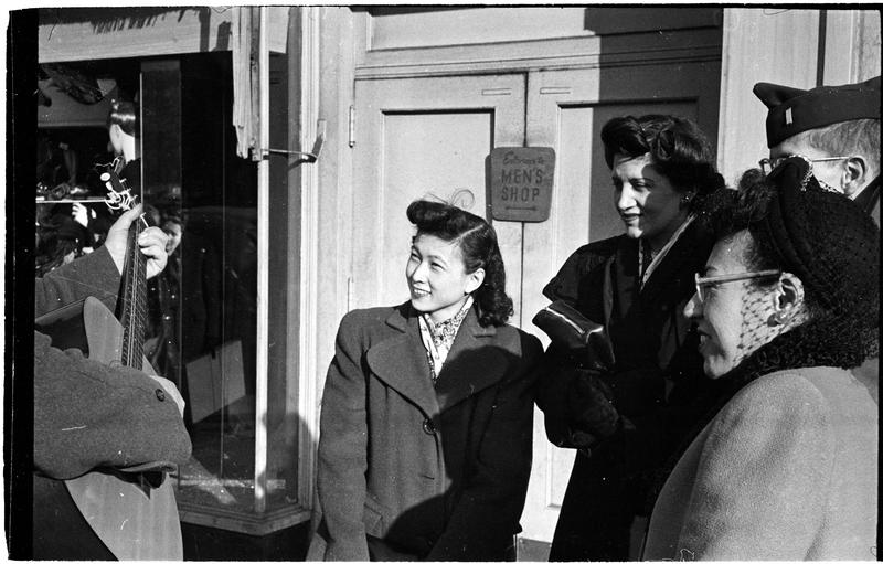 Burl Ives [Burl Ives performing on the street and audience.]
