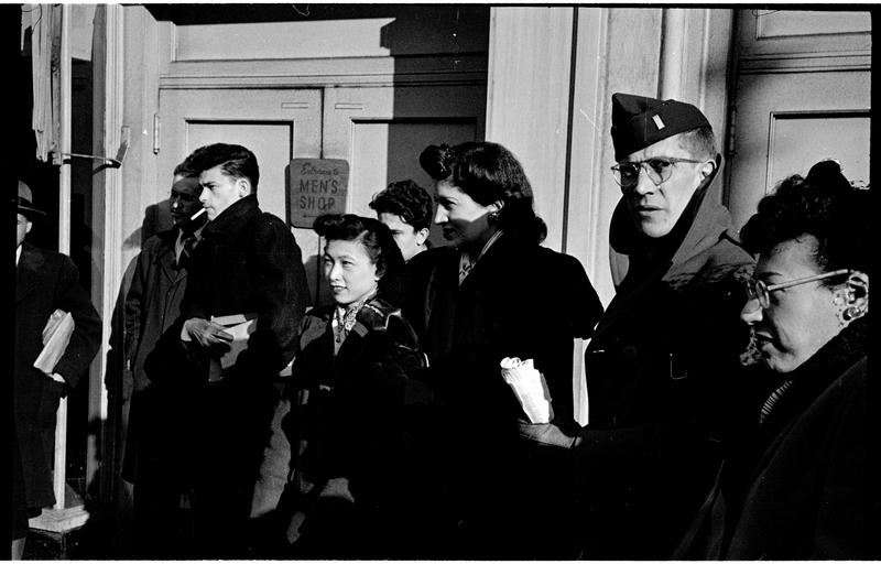 Burl Ives [Audience at a Burl Ives street performance.]