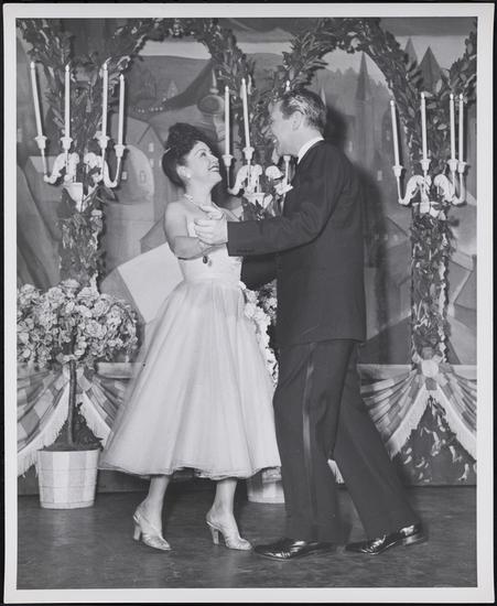 [Ethel Merman as Mrs. Sally Adams in "Call Me Madam".]