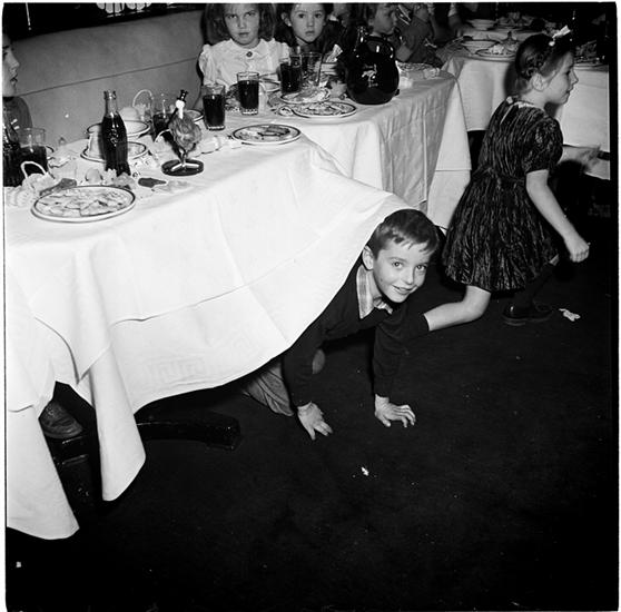 United Nations Children's Party [Child with balloons at a dinner table.]