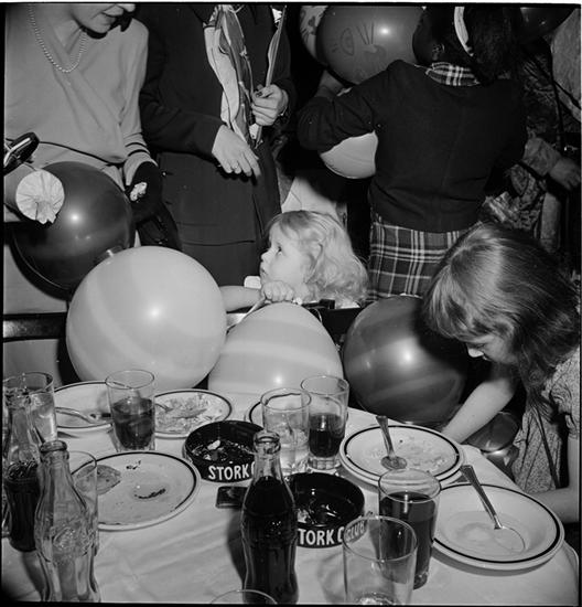 United Nations Children's Party [Child with balloons at a dinner table.]