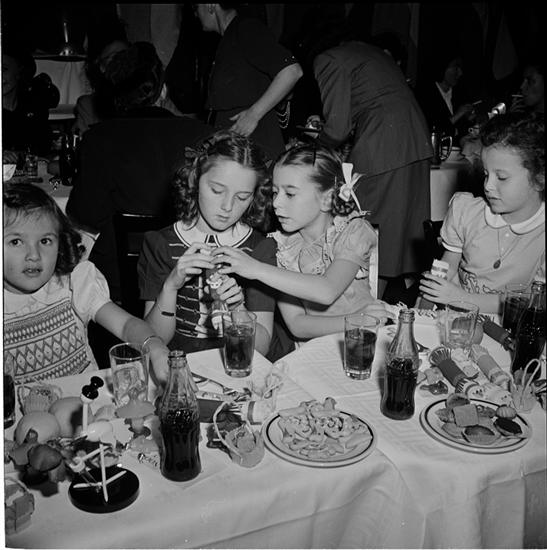 United Nations Children's Party [Child with balloons at a dinner table.]