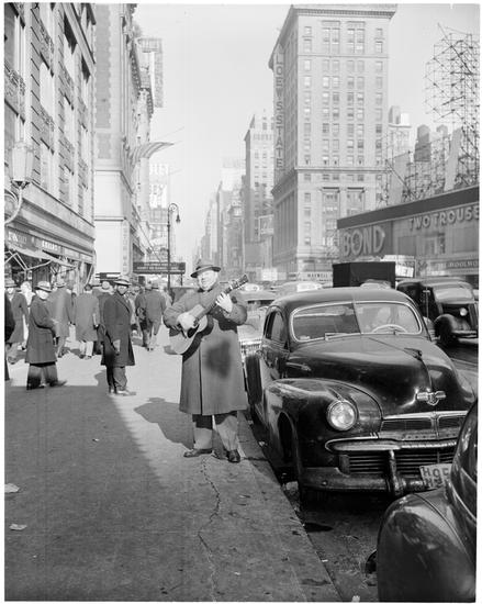Burl Ives [Burl Ives performing in the street.]