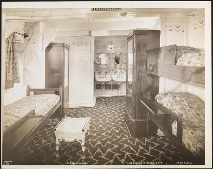 French Line, S.S. "Rochambeau", Cabin Class Interior, 3 Berth Stateroom #119.