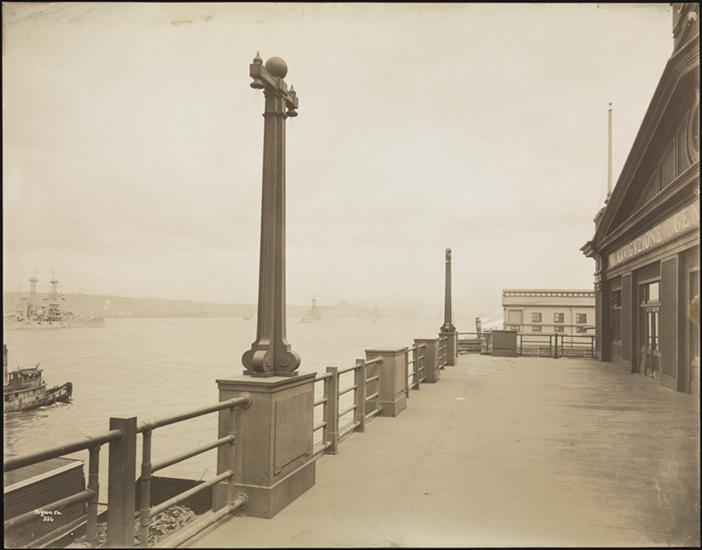 Italia-America Shipping Corp., Navigazione Generale Italiana, Exterior, of Pier #97, Balcony and Looking Up North River.