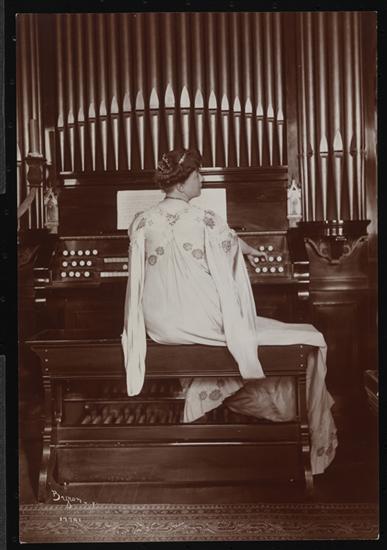 Portrait, Mrs. I.M. Clark with Her Special Pianos at Apartment.