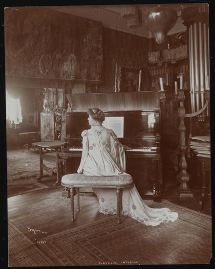 Portrait, Mrs. I.M. Clark with Her Special Pianos at Apartment.