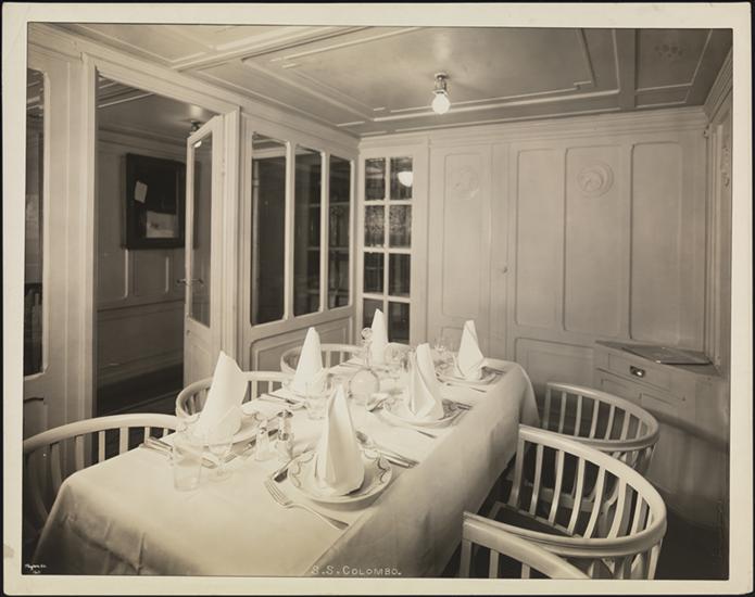 Italia-America Shipping Corp., S.S. "Colombo", Pier 97 North River, Third Class Dining Room.