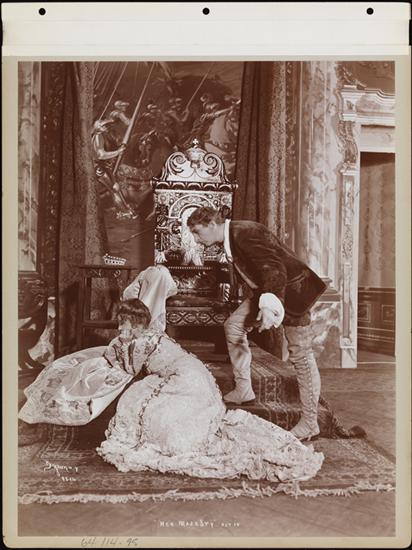 A scene from Act IV of J.I.C. Clarke's dramatization of Knight Tompkins play "Her Majesty, The Girl Queen of Nordenmark" presented at the Manhattan Theatre in 1900.