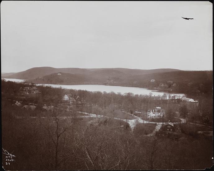 [Tuxedo Lake and houses rom West Lake Drive, Tuxedo Park, N.Y.]