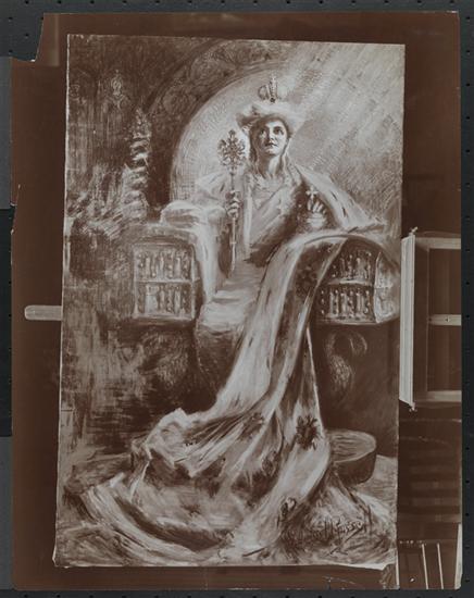 Photograph of a painting of a woman holding a septor, etc.; signed "Edmund Russell."