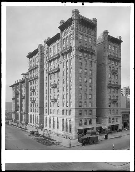 [Apartment building at the intersection of Riverside Drive and West 110th Street.]