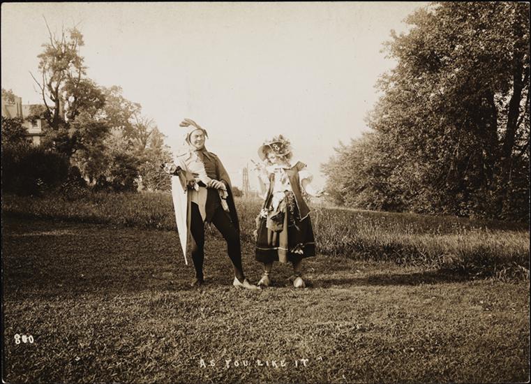Actors in an open air production of William Shakespeare's "As You Like It" presented on the grounds of what may be the Stevens Residence, Hoboken, N.J.