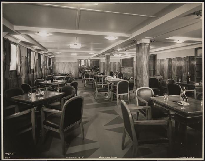 French Line, M.S. "Lafayette" Third Class-Forward, Interior, Smoking Room.
