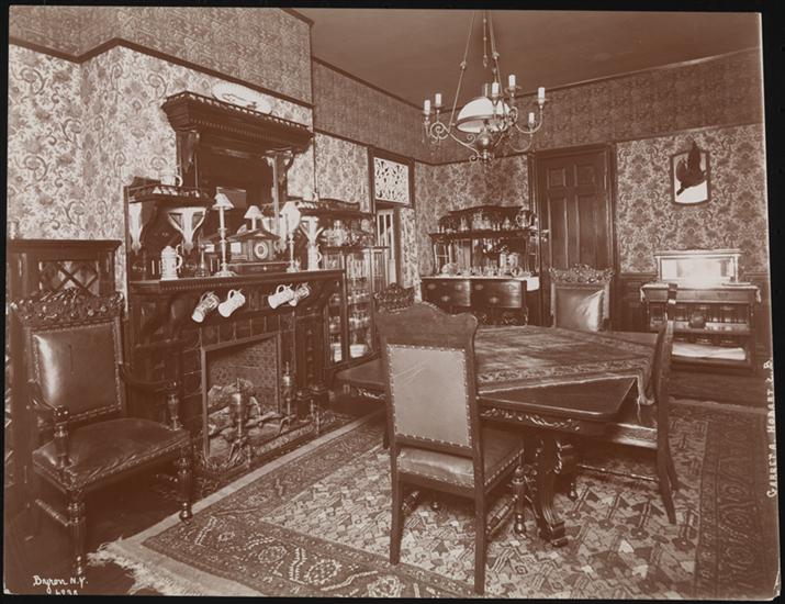 A dining room in the house of the Garret Augustus Hobart (U.S. Vice President 1897-99) estate in Long Branch, New Jersey.