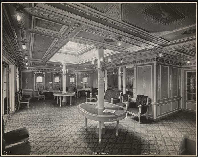 French Line, Interior, S.S. "Savoie", Cabin Class, Salon Mixte.