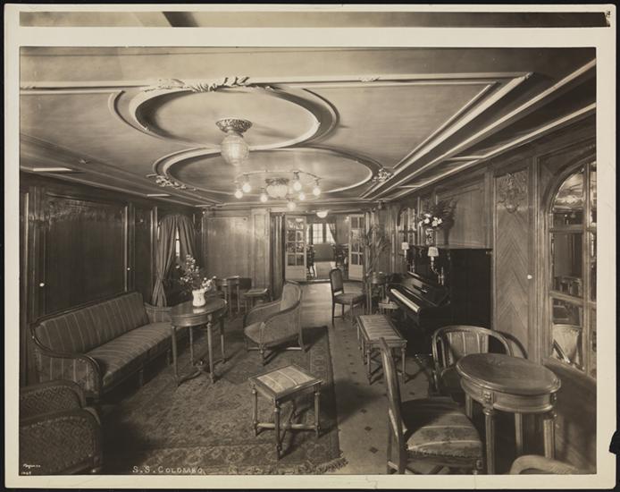 Italia-America Line, S.S. "Colombo", Interior, Second Class Smoking Room.