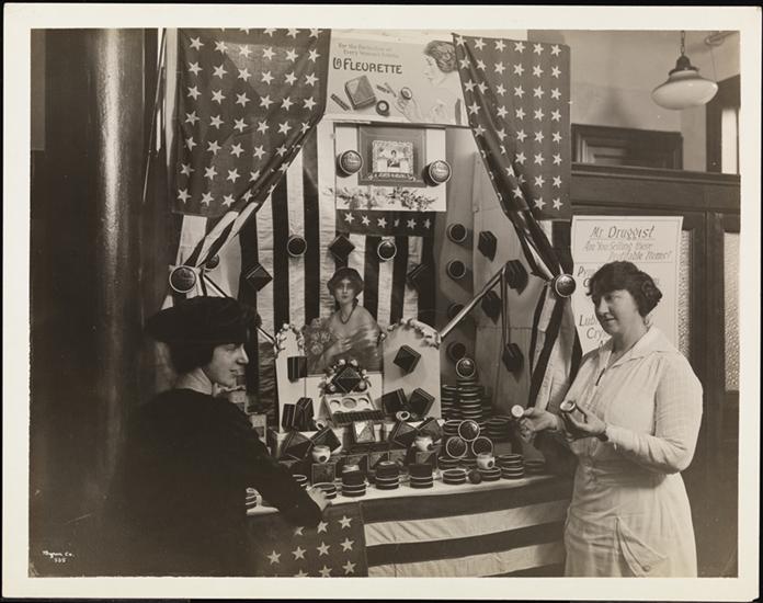 A display for the Crystal Chemical Co. (located at 134th Street & Willis Avenue), a saleswoman and a customer.