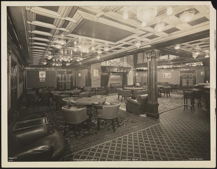 Lloyd Sabaudo Line, S.S. "Conte Biancamano" Pier 95 N.R., Second Class Smoking Room.