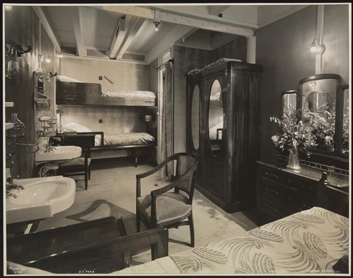 French Line, S.S. "Paris" Pier 88 N.R., Third Class, Interior, Inside 4 Berth Cabin #821.