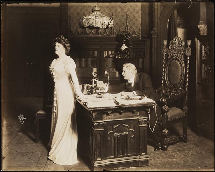 [Grace Elliston as Shirley Rossmore and Edmund Breese as John Burkett Ryder in "The Lion and the Mouse".]
