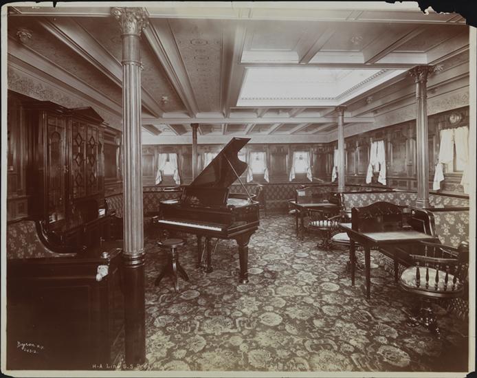 "H-A Line, S.S. President Lincoln, Ladies Parlor, 1st Class" on neg.
