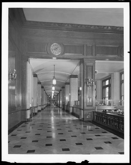 11 West 51st Street. Chemical Bank and Trust Co. main interior looking out.
