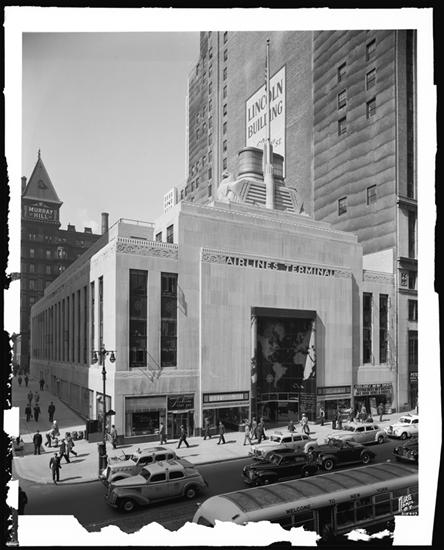 42nd Street and Park Avenue, S.W. corner. Airlines Terminal Building, general view from street, with Automat.