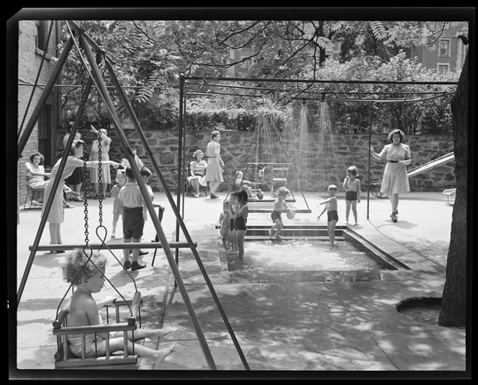 East 41st through 42nd Streets. Tudor city, playground and pool for children.