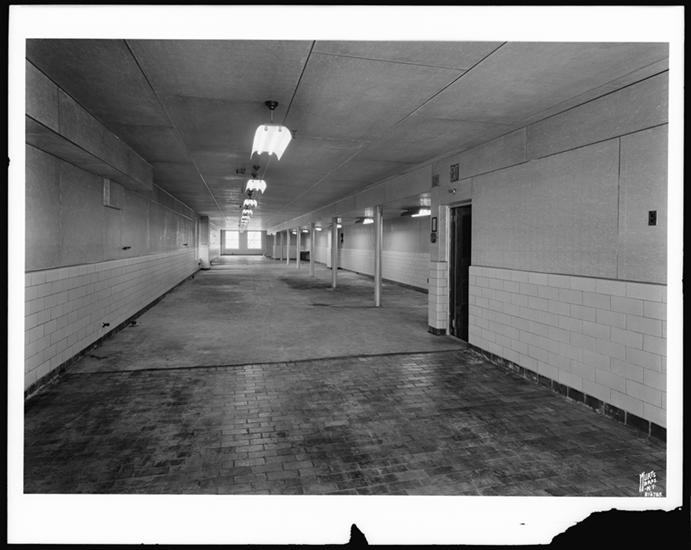 39 North Moore. View of tiled floor and walls in work rooms at S.H. Haran Co. fish importers.