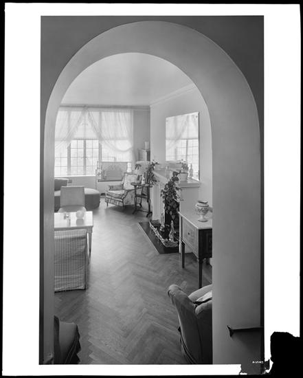 123 East 37th Street. Lindsley House apartments, interior, living room, apartment 5B, model apartment.