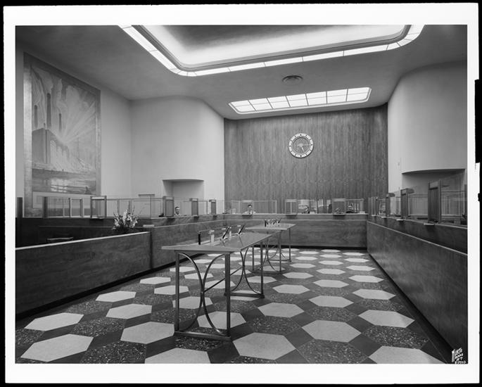 11 West 51st Street. Chemical Bank and Trust Co. main interior looking out.