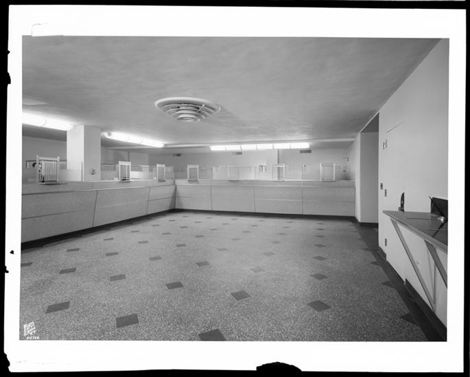 11 West 51st Street. Chemical Bank and Trust Co. main interior looking out.