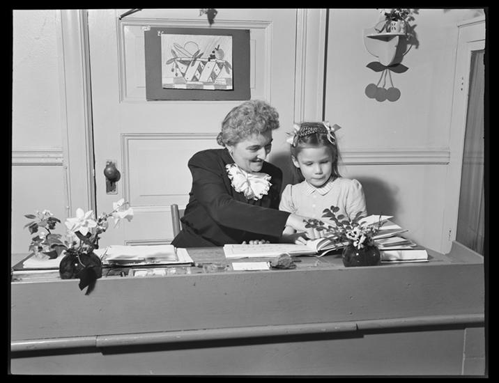 112 Schermerhorn Street. Brooklyn Friends School, Mary Rogers, head of lower school, and "Pinky".