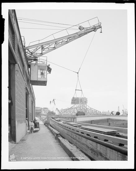 New York State Barge Canal Terminal and unloading barge of gypsum bags, etc., legal record views, 9:30am to 1:15pm.