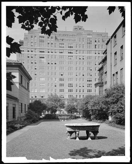 220 Madison Avenue. John Murray House, view from window showing J.P. Morgan's library and garden.