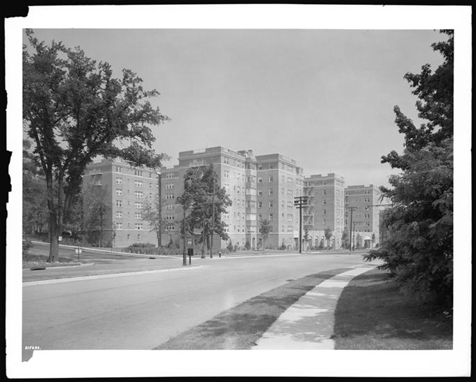 Riverdale Avenue and 254th Street. Riverdale Park Apartments, birds-eye view across courts.